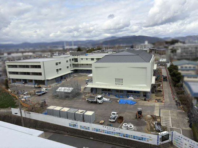 ・ 校舎に関しては家具工事、器具等の設置を行っており、内装工事の最終段階であること、また、外構に関しては、グラウンドや校舎周りの擁壁、側溝等の工事を進めている旨の説明がありました。なお、3月中旬からはグラウンドの工事を進め、仮設工事事務所も縮小していく予定で、工事は順調に進んでいる旨の報告がありました。